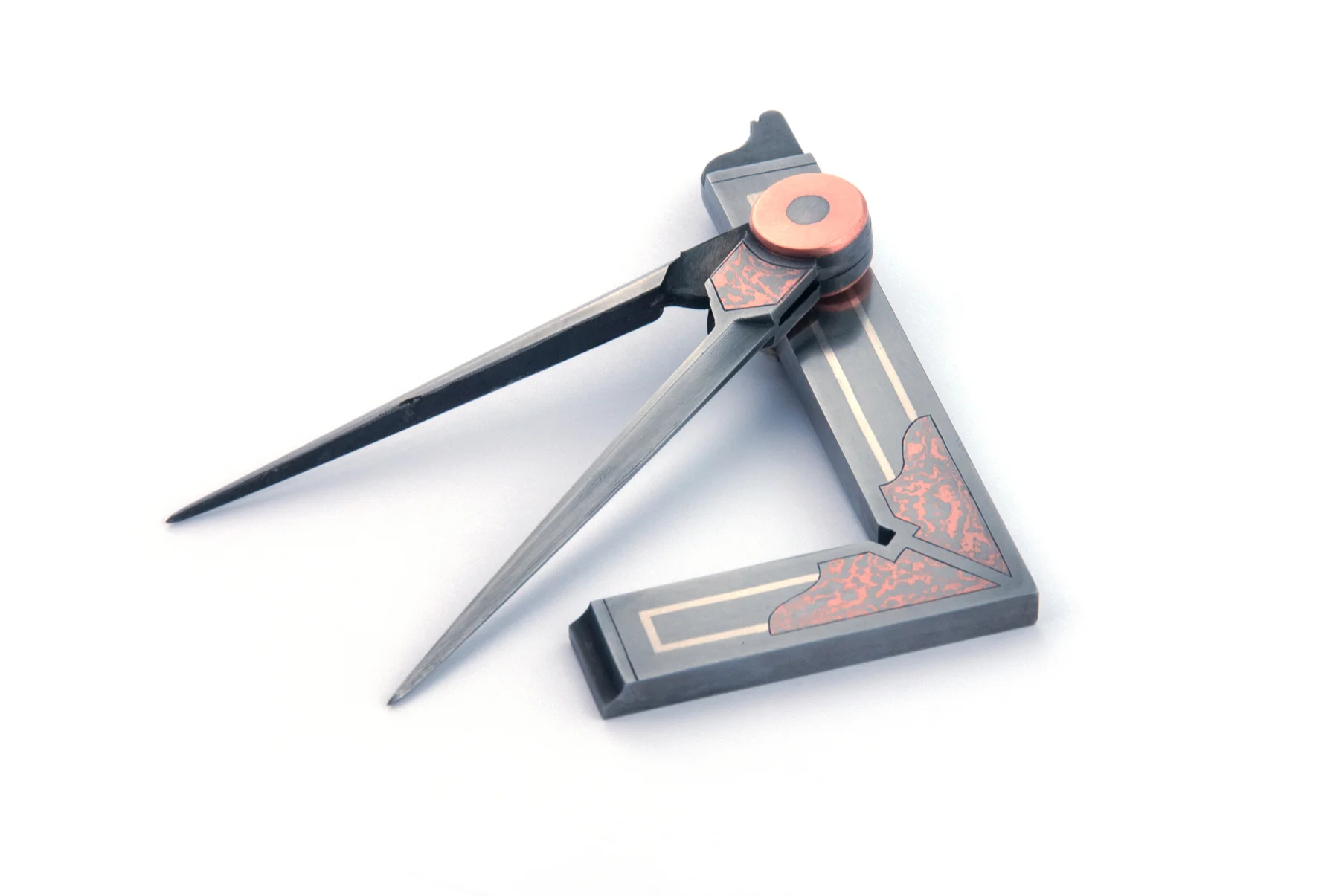pure iron, copper, fine silver, pure iron and copper mokume gane